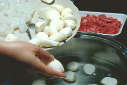 じゃ、早速いただきます。うぉーっ旨い!! でも、あわてて食べてやけどしないでね(^^ゞ 実は家の中で芋煮を作ったのははじめてだったのですが、ゆあーずのおかげでたれの分量の心配もすることなく、非常においしくできました。これなら、全国に自慢できますね。みなさんも、米沢にわざわざいらっしゃらなくても芋煮が食べられますよ。ぜひ挑戦してみてください。 |