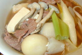 8.できあがり!! さあ、熱いうちに食べましょう(^○^) 残ってしまったら、翌日でも充分おいしいです。芋に味が良くしみ込んで一層おいしいかも。また、残ったつゆは米沢牛のうまみがたっぷり。うどんを入れて、煮込んで食べてもグーですよ。 |