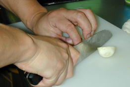 下ごしらえの終了です。ちょっと見栄え良く並べてみましたが、普通はまとめてどかんと置いておきます。まぁ外でやるときはいもが煮えるまでに他の物を準備します。 |