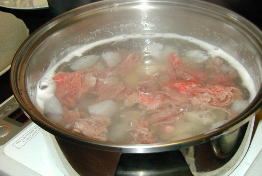 4.牛肉からもあくが出ますので丹念にすくいましょう。 |